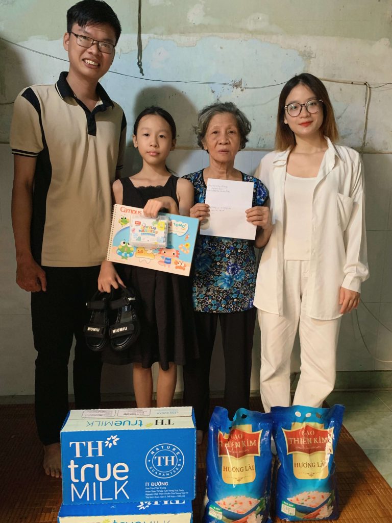 Trong chuyến thăm lần này, Lady Kombucha thay mặt cho các khách hàng đã tham gia chương trình tái chế “Lady Kombucha Care” để trích 1000 chai rỗng gửi đến bà cháu bé Thúy An với những món quà thiết thực cho năm học mới. Chúng tôi trao tặng em một bộ đồng phục mới, 1 bộ sách giáo khoa, dụng cụ học tập, một đôi giày sandal, cùng hai thùng sữa tươi và 10 kg gạo với hy vọng rằng bà và em luôn khỏe mạnh, sống vui sống hạnh phúc qua từng ngày.